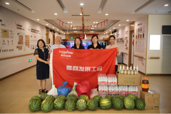 與此同時,魯商發展所屬城市公司也開展了夏季送清涼活動,8月11日,濟南城市公司副總經理葉夕生、綜合部總監羅天姿到濟南城市公司所屬各項目部深入施工現場,慰問一線員工,為他們送去了西瓜、綠豆、純凈水、霍香正氣水等降溫防暑物品,并叮囑他們注意防暑降溫和施工安全。